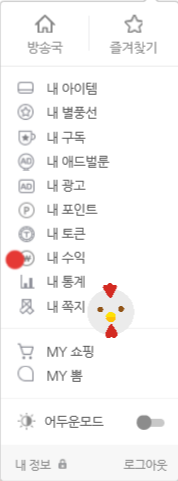 1. 아프리카 TV 로그인하고 홈페이지 오른쪽 상단 빨간색 표시를 누른다.