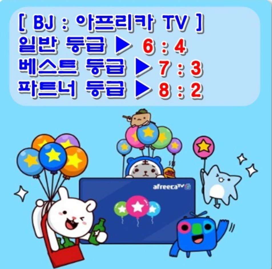 등급을 기준으로 별풍선 수익금을 BJ와 아프리카 TV가 나눠 갖는 것인데,