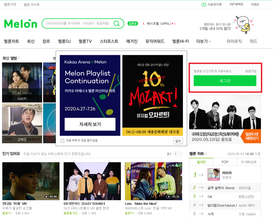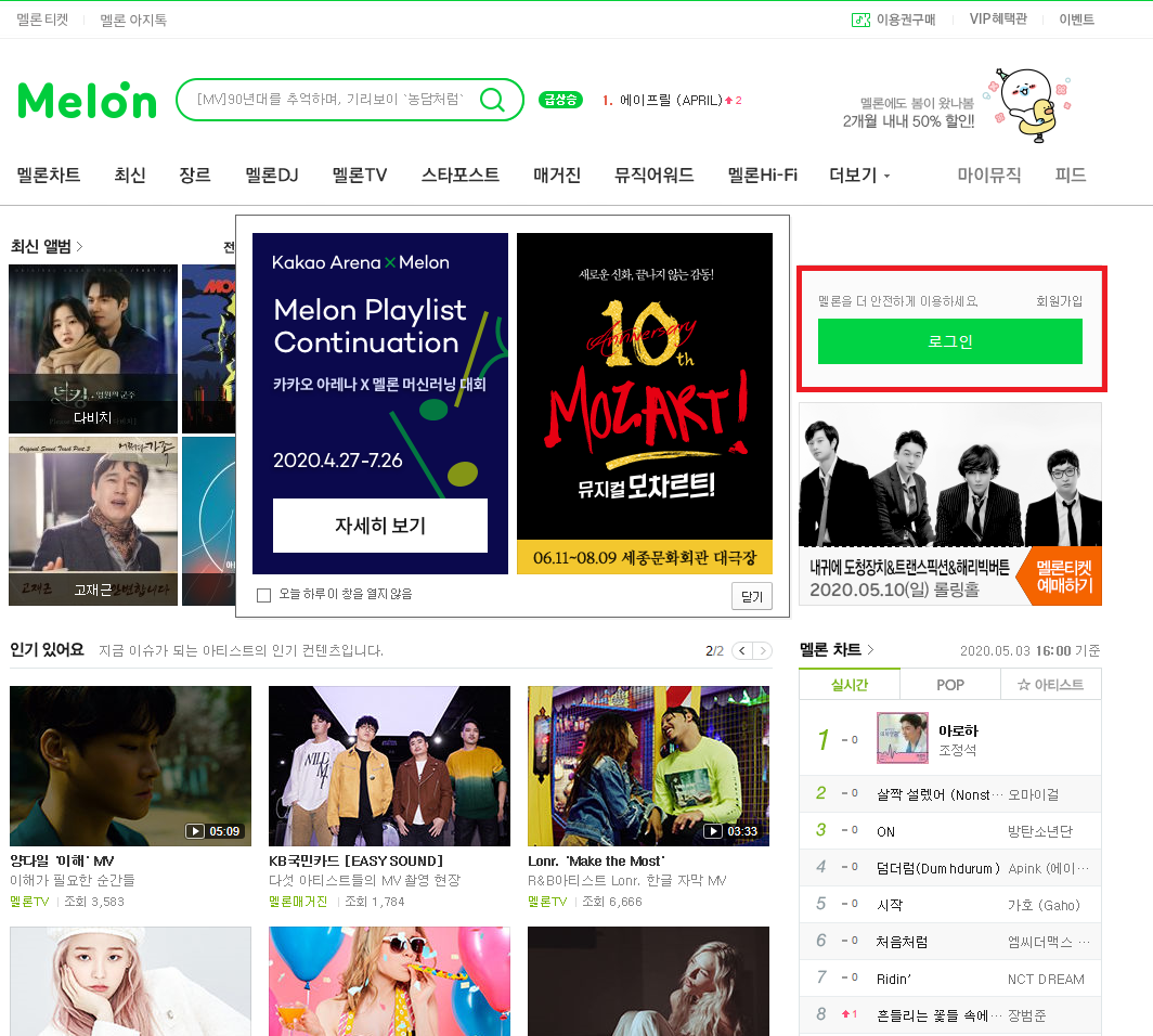 1. 멜론 홈페이지 들어가셔서 로그인합니다.