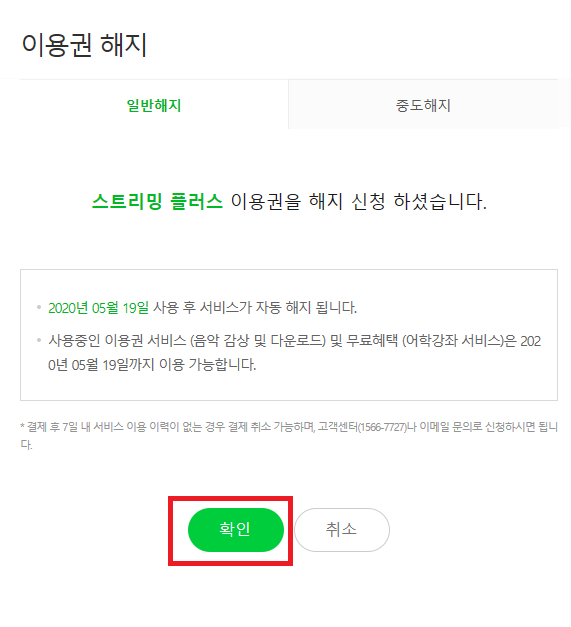 이용권 해지 신청은 위에서도 말씀드렸다시피 PC로만 가능합니다.